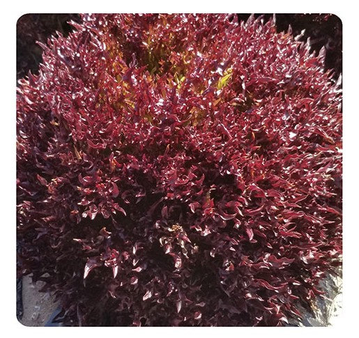 紫红色叶片,颜色亮靓丽有光泽,叶片缺刻细碎抗病性好,植株团簇形,美观漂亮。
